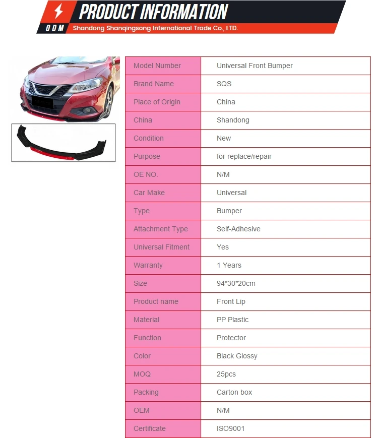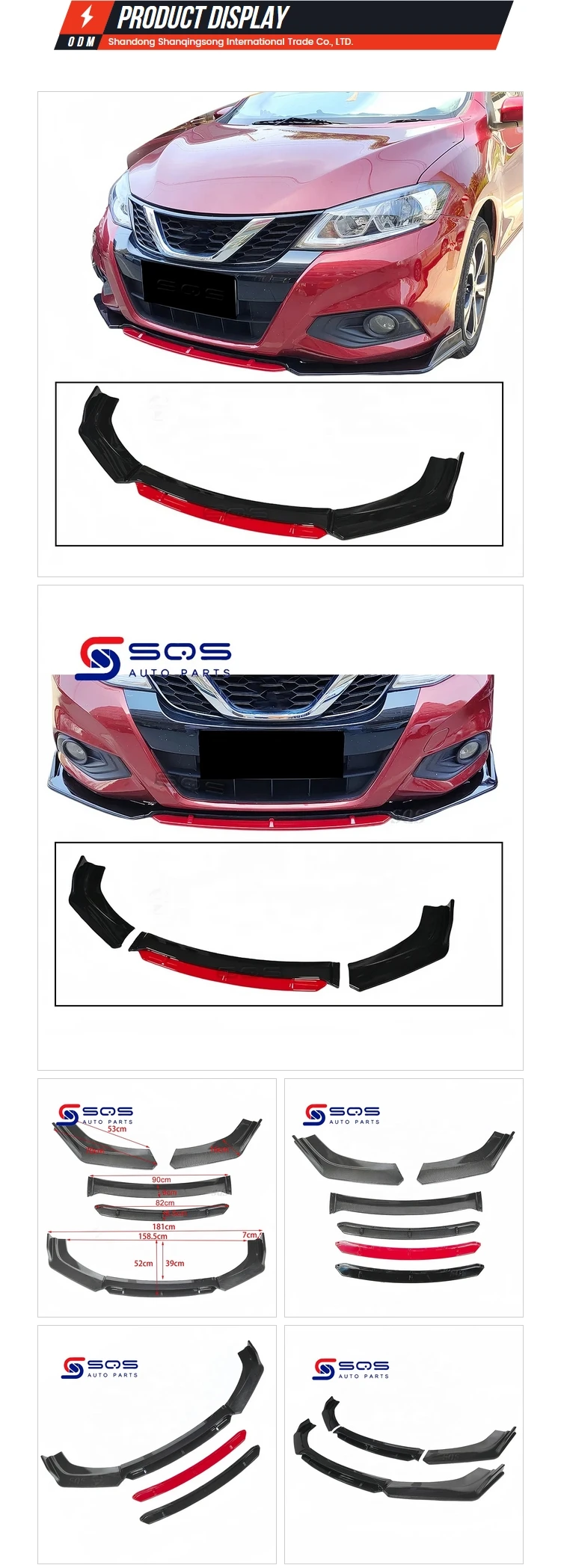 Be the first to review “SQS Factory Customization High-Quality Auto Body Kits Glossy Black And Red Universal Front Bumper Lip Type E For All Model Car”