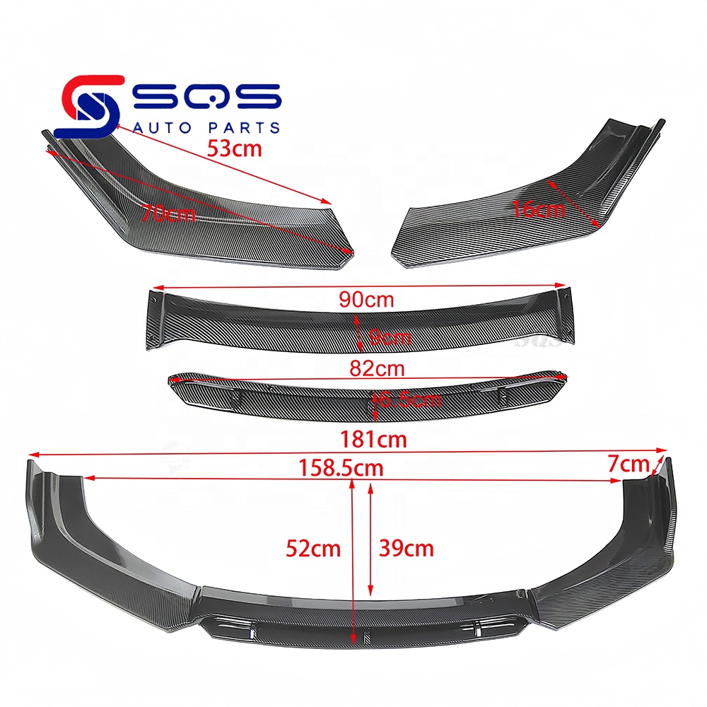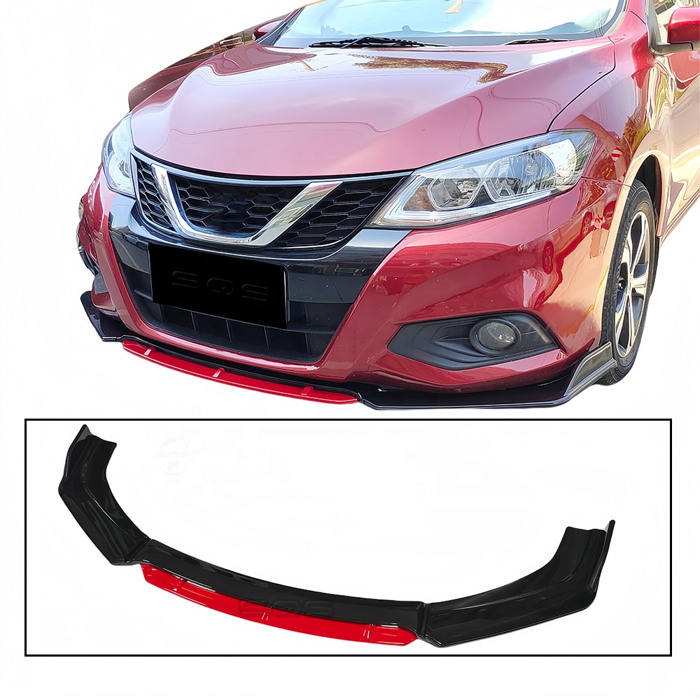 SQS Factory Customization High-Quality Auto Body Kits Glossy Black And Red Universal Front Bumper Lip Type E For All Model Car