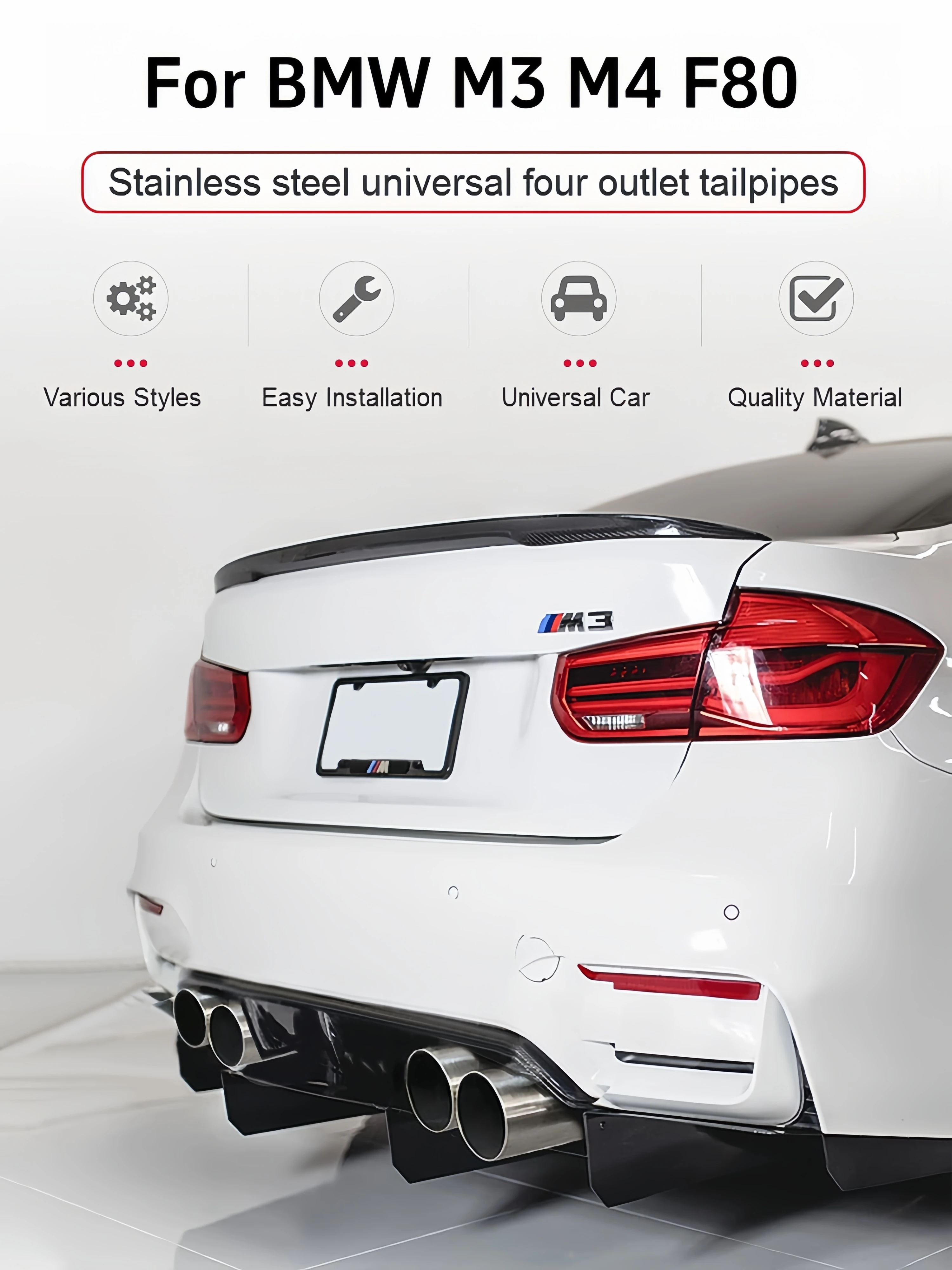 SQS High-Quality Factory Customization 304 Stainless Steel Muffler Tip Exhaust Tip Exhaust Pipe For BMW F87 M2 F80 M3 F82 F83 M4