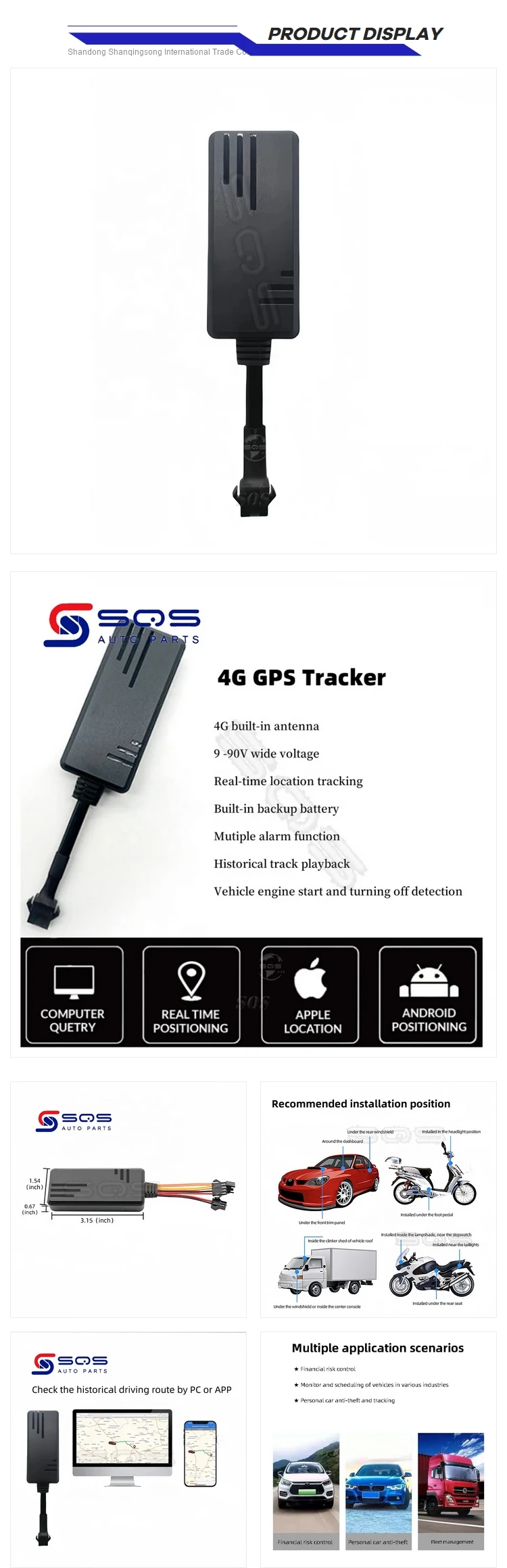 | Function | Remote Control, Speed Warning, sos alarm, voice monitoring, Vehicle maintenanc, 4G gps vehicle tracking device |