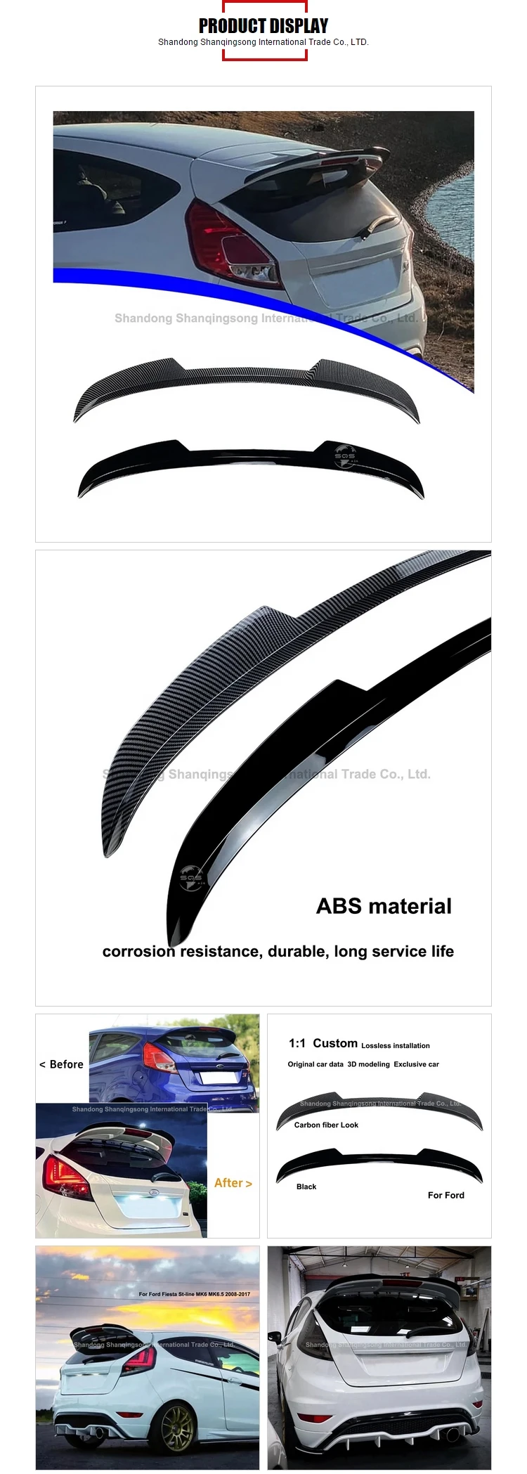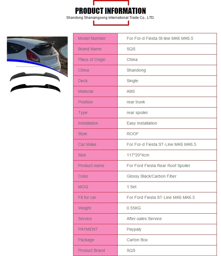 Be the first to review “SQS High-Quality Rear Trunk Roof Spoiler Body Kit For Ford Fiesta St-line MK6 MK6.5 2008-2017 Wing Accessories”