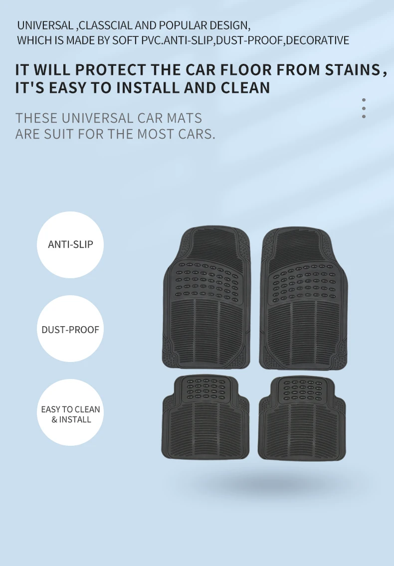 SQS High Quality Universal Fit Anti Slip Mat Car Carpet Mats Set Custom Rubber PVC 4 Pieces Car Mat Roll For Cars Accessories