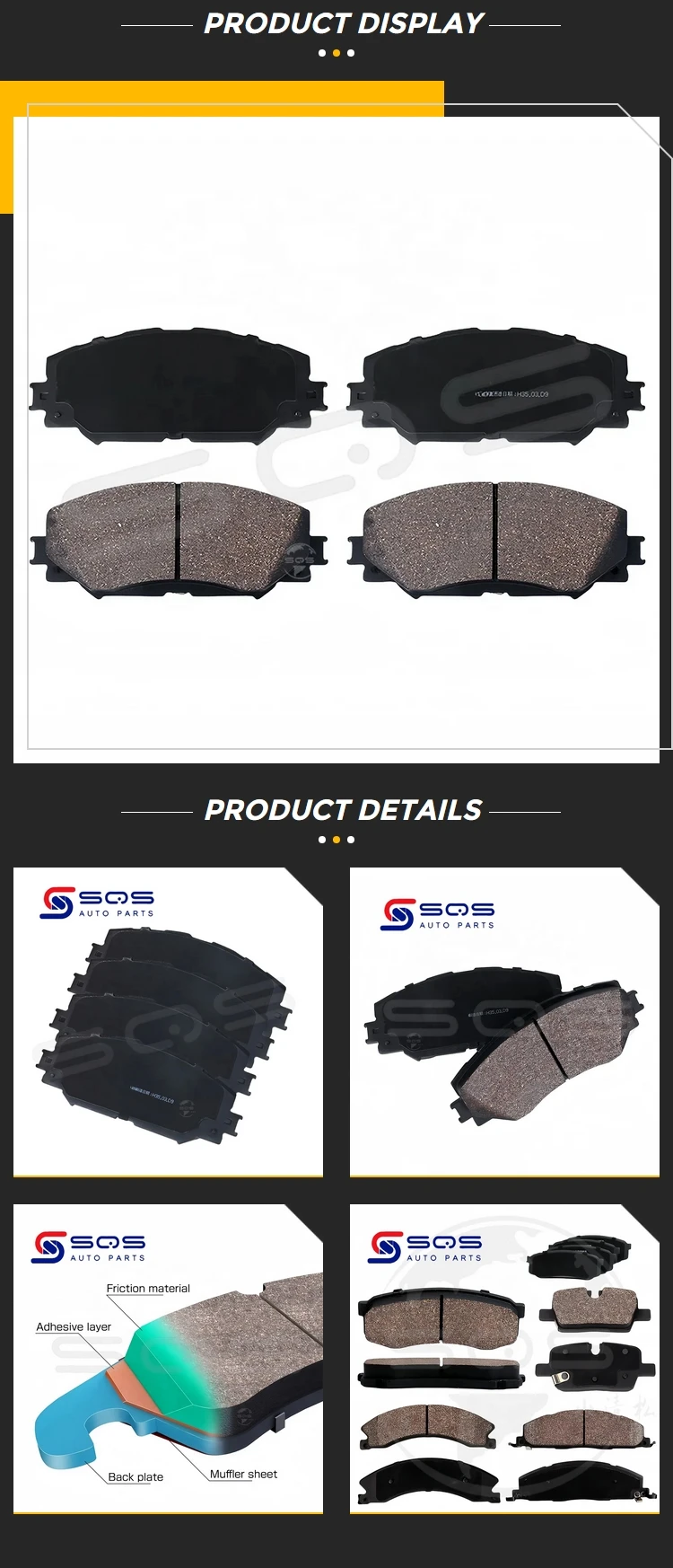 SQS High Quality Brake Pads 04465-02220 For TOYOTA COROLLA AURIS SIENTA Ceramic Brake Pads Factory Direct Sale
