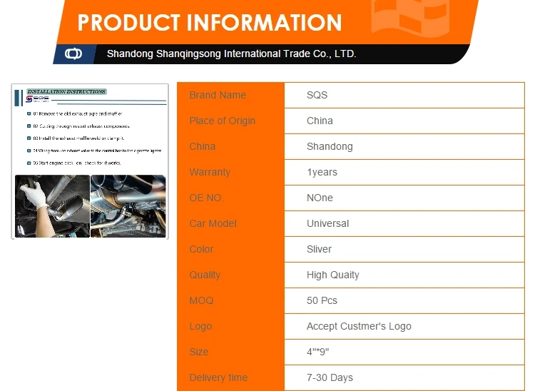 SQS High-Quality Factory outlet 4*9inch car exhaust pipes